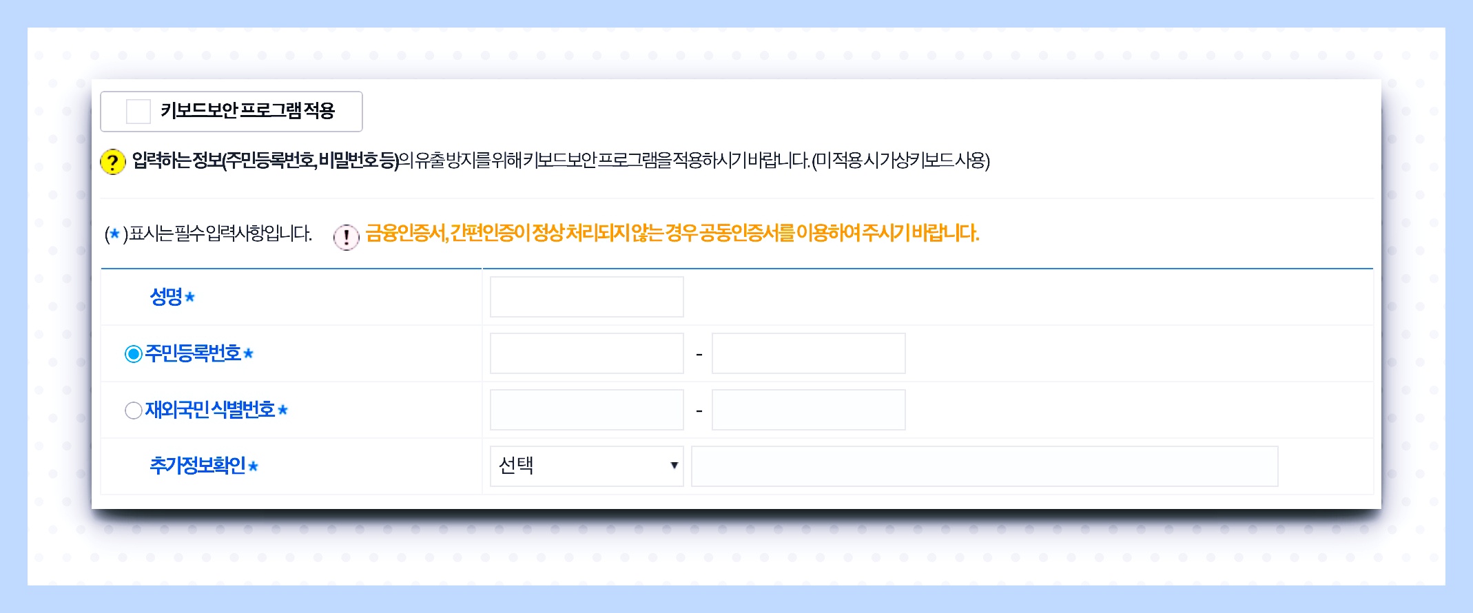 외국인은 본인의 이름, 주민등록번호, 외국인번호 등을 입력하여 발급받을 수 있습니다. 최근에는 간단한 인증 절차로도 로그인이 가능하므로 이를 활용할 수 있습니다.