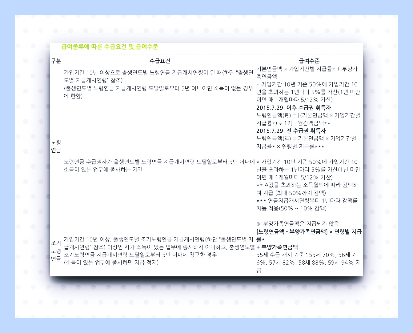 젊고 돈을 벌 때 미리 모아두기시기도 하지만, 은퇴하신 후 생활에 필요한 금액을 꾸준히 받을 수 있을만한 고민을 하시기도 하는데요. 오늘은 그 중에서 노령연금 금액과 자격에 대해 간단히 살펴보려고 합니다.